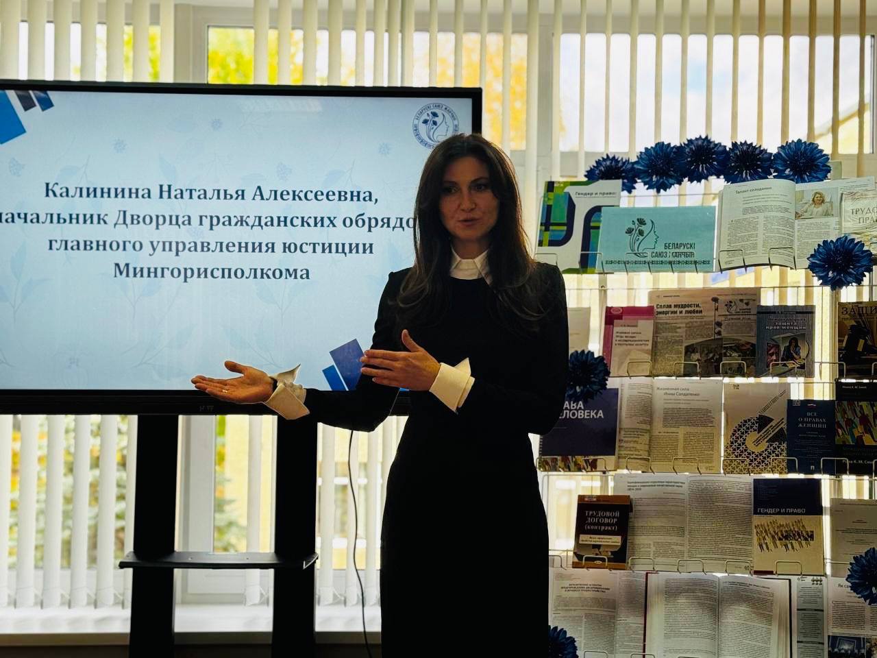 У рамках Адзінага дня інфармавання начальнік Палаца грамадзянскіх абрадаў галоўнага ўпраўлення юстыцыі Мінгарвыканкама Наталля Калініна сустрэлася з працоўным калектывам РУП па аказанні паслуг "БелЮрЗабеспячэнне".