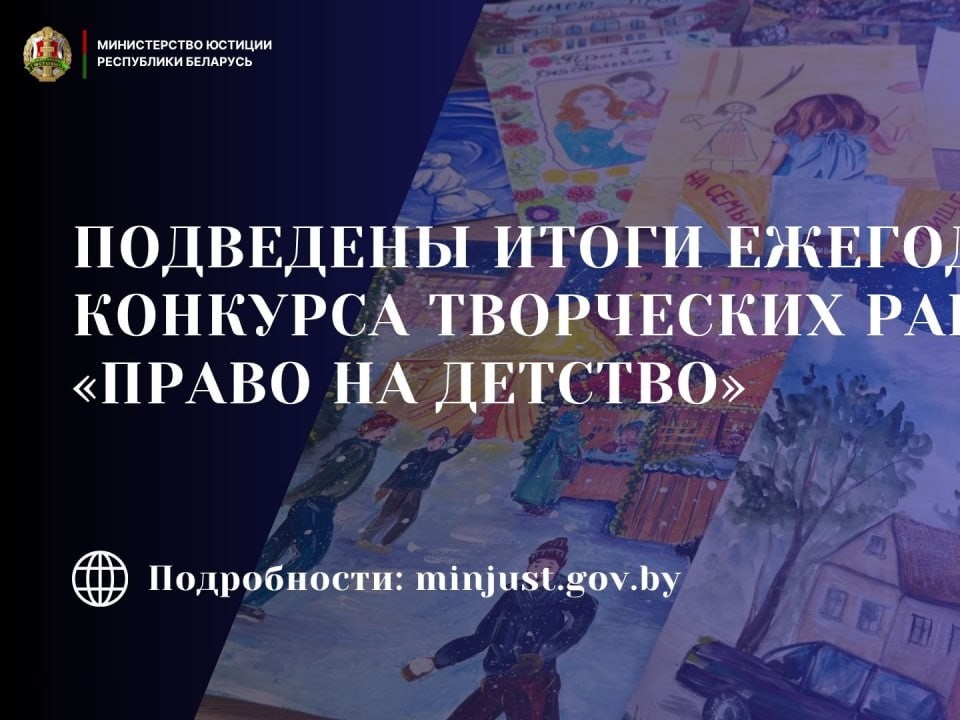 У Міністэрстве юстыцыі падвялі вынікі штогадовага конкурсу творчых работ "Права на дзяцінства". Удзел у ім узялі больш за тысячу хлопчыкаў і дзяўчынак з усіх рэгіёнаў Беларусі.