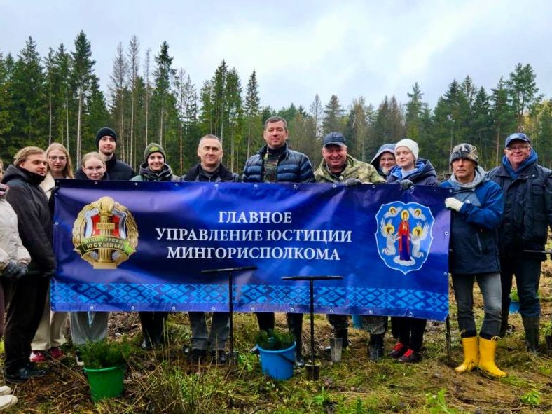 У рамках маштабнай рэспубліканскай акцыі "Дай лесу новае жыццё!" работнікі галоўнага ўпраўлення юстыцыі Мінгарвыканкама змянілі строгія касцюмы на рабочую форму і ўзялі ў рукі лесапасадачны інвентар. Экалагічнае мерапрыемства, прымеркаванае да Года добраўпарадкавання, прайшло на тэрыторыі Дзяржынскага лясніцтва Мінскага лясгаса.