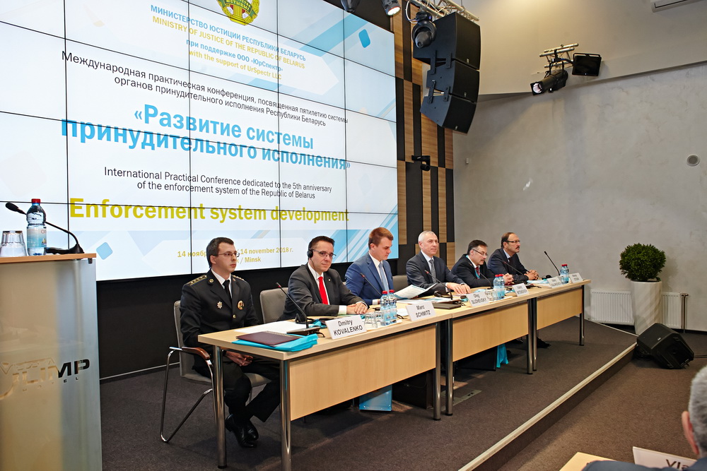 14 ноября 2018 года руководство главного управления юстиции Мингорисполкома и управления принудительного исполнения главного управления юстиции Мингорисполкома приняли участие в международной практической конференции «Развитие системы органов принудительного исполнения», организованной Министерством юстиции Республики Беларусь.