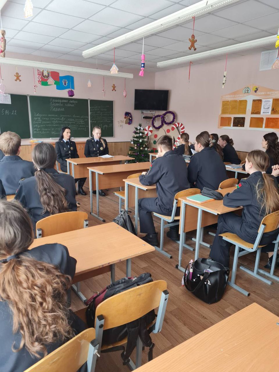 В рамках плана сотрудничества главного управления юстиции Мингорисполкома и ГУО «Средняя школа № 116 г. Минска им. М.В. Фрунзе» состоялась встреча учащихся класса военно-патриотической направленности с заместителем начальника и судебным исполнителем отдела принудительного исполнения Октябрьского района г.Минска Юлией Воронько и Валерией Зинович.
